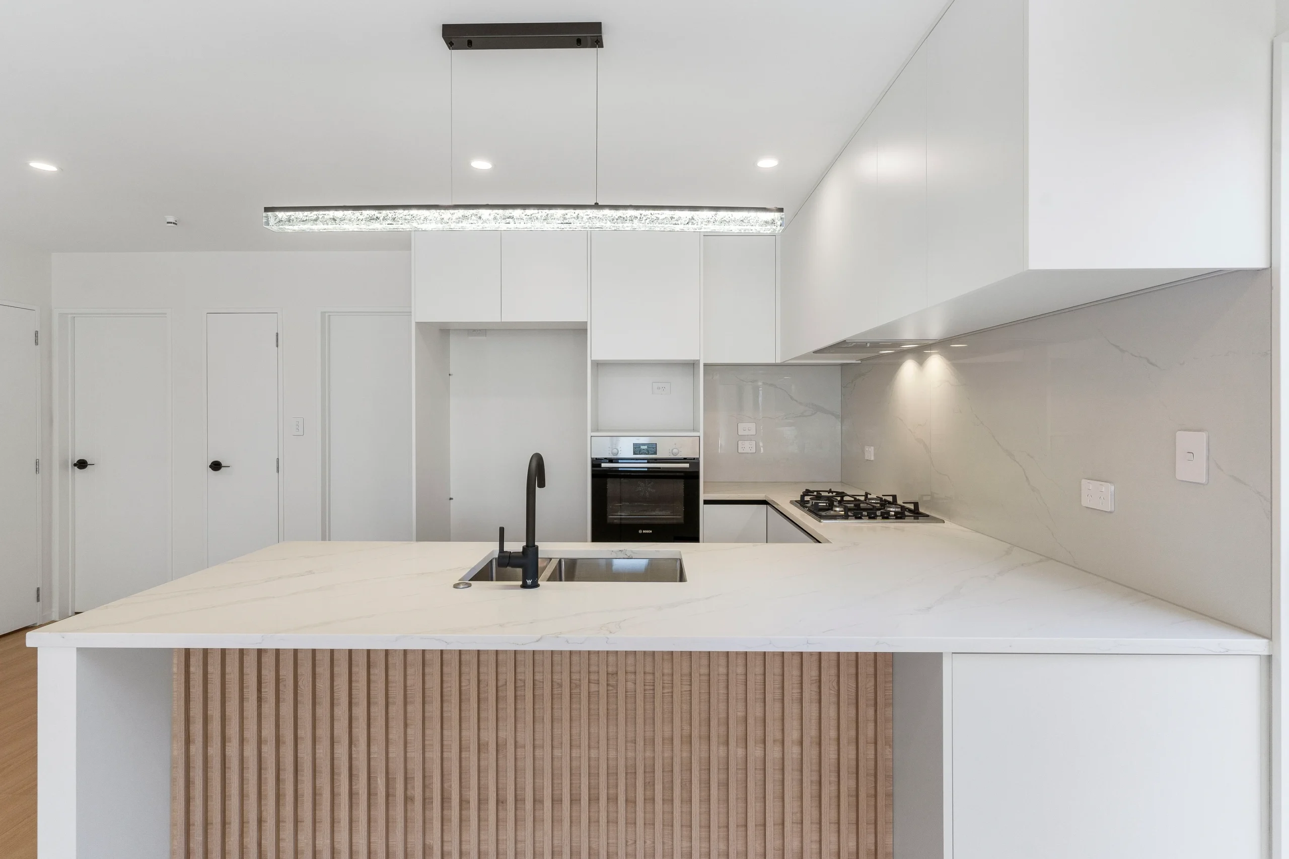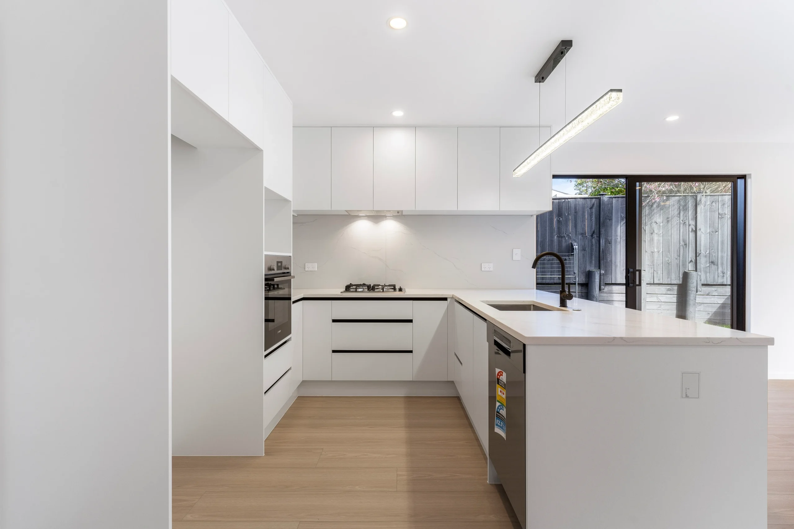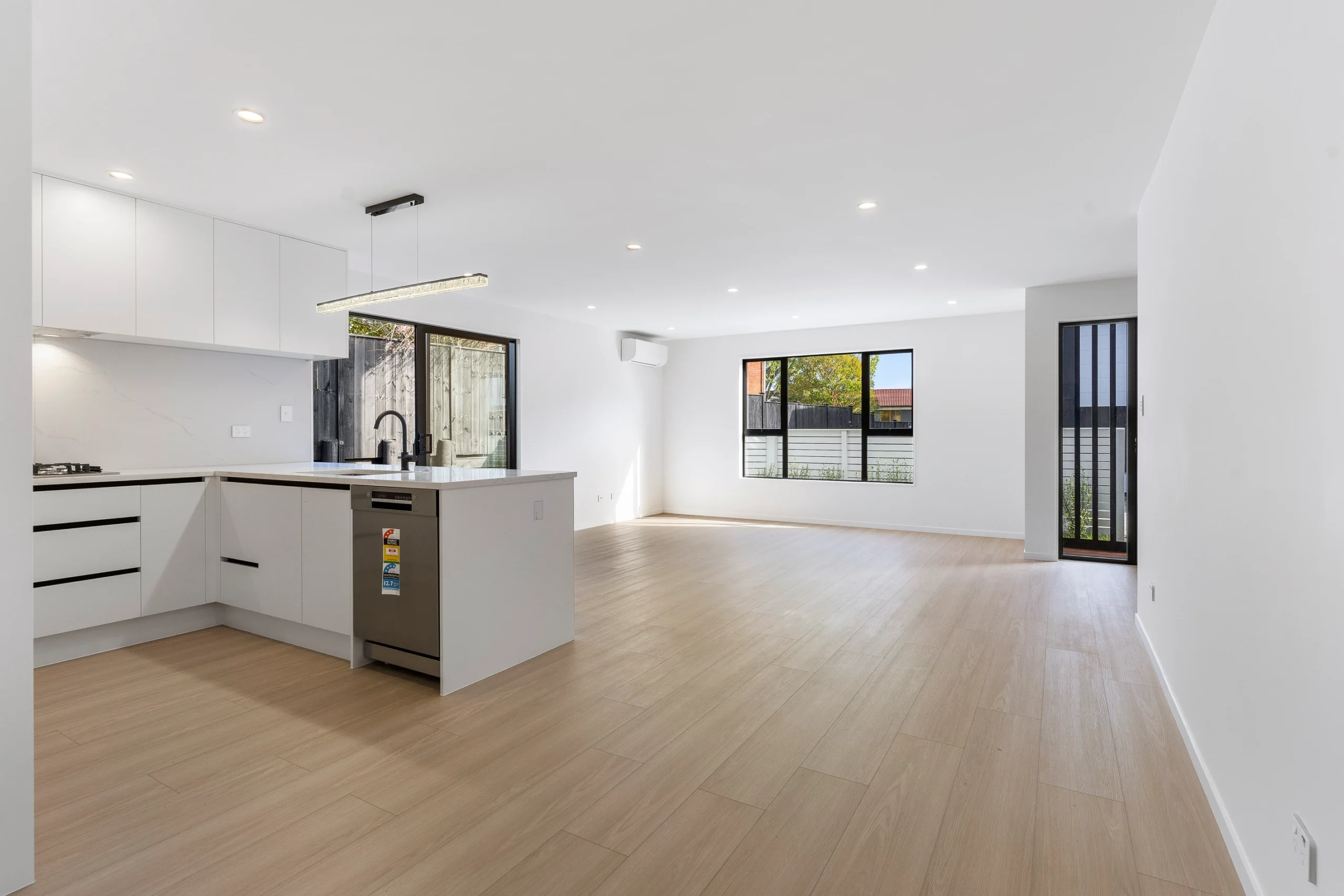 The north-facing living room fills with sunlight throughout the day, creating a cheerful ambiance for gatherings or quiet evenings. The open-plan kitchen features a gas stovetop, sleek cabinetry, and a dishwasher, providing everything you need for family meals or entertaining. With ample indoor storage space and a gas pipeline, this home caters to your every convenience.